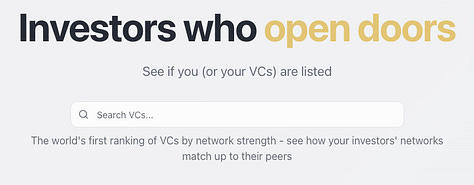 A first-of-its-kind tool that empowers founders to vet VC connectivity and strategically select investors for their cap tables